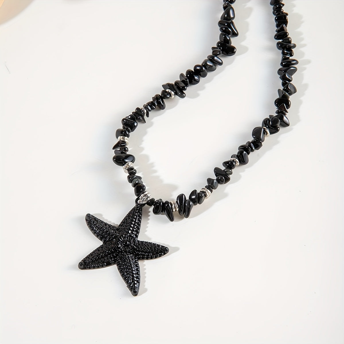 ✨ Colgante de estrella de mar en un collar de cuentas con detalles metálicos.