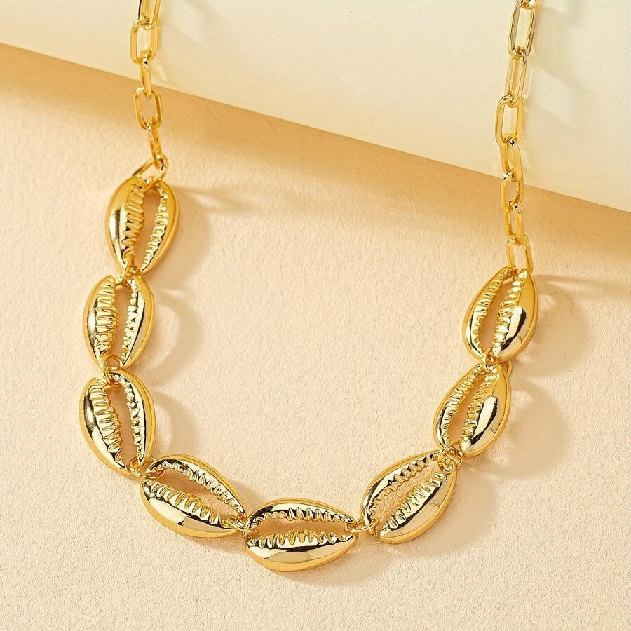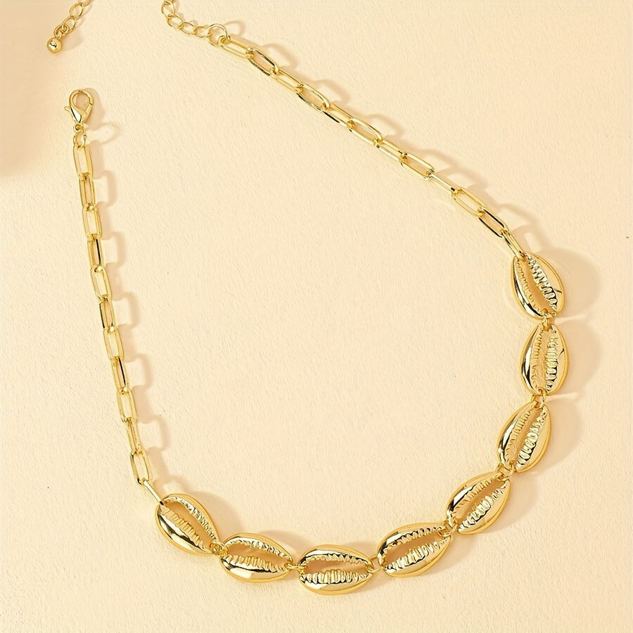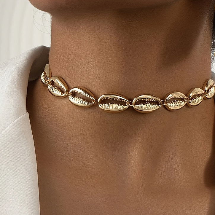 ✨ Gargantilla estilo cauri con elementos de conchas entrelazadas en metal dorado.