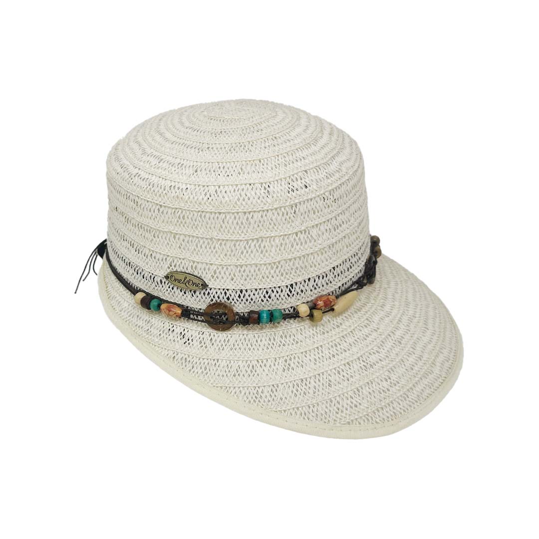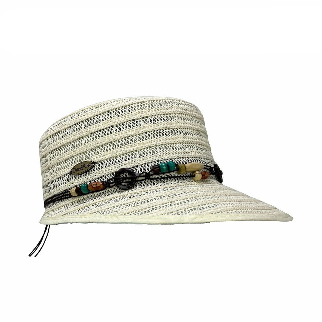 Viseron trenzado beige con banda de cuentas