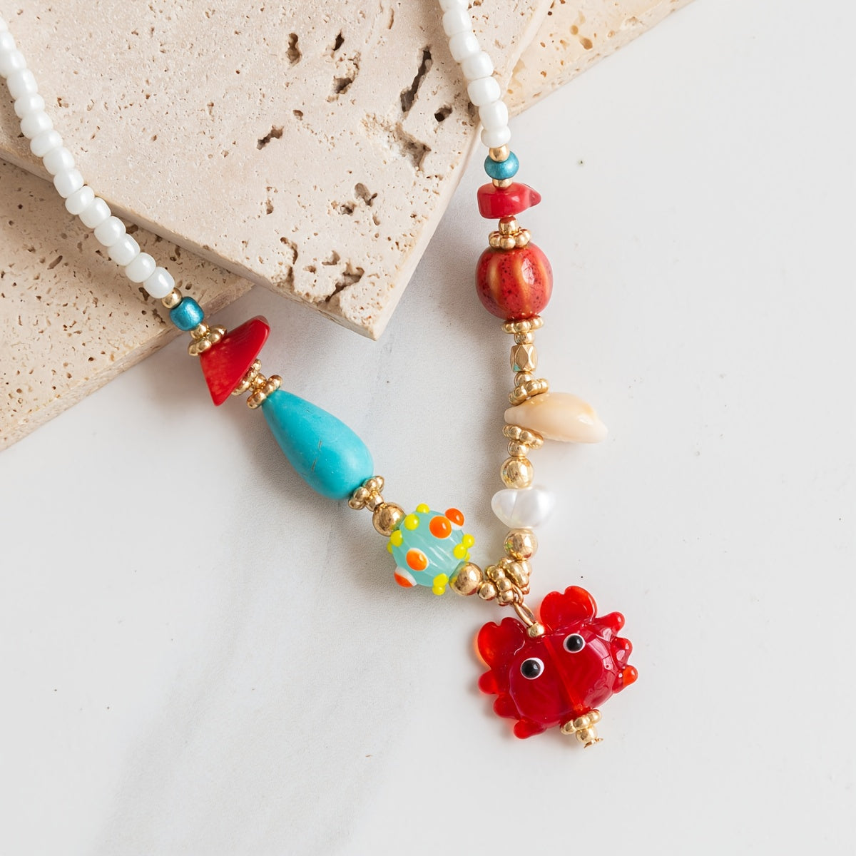 ✨ Playful crab charm necklace on a bead strand with gold-tone accents.